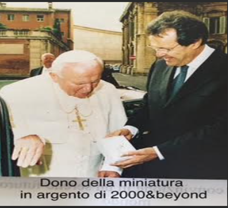 Il secondo episodio avvenne circa tre mesi dopo. Ricevetti una telefonata dall’ambasciata tedesca con la quale mi si chiedeva la disponibilità ad incontrare a Berlino, un importante gruppo imprenditoriale. Accettai l’invito e raggiunsi la sede della società alla riunione erano presenti varie persone. Mi dissero che erano interessati alla idea del Parco Religioso e ciascuno di loro mi pose domande sulle varie componenti del progetto. Rimasero soddisfatti e mi dissero che erano disposti a compartecipare con una somma di 6 milioni, con un reciproco impegno a trovare altri investitori per raggiungere il totale del costo (51 milioni).